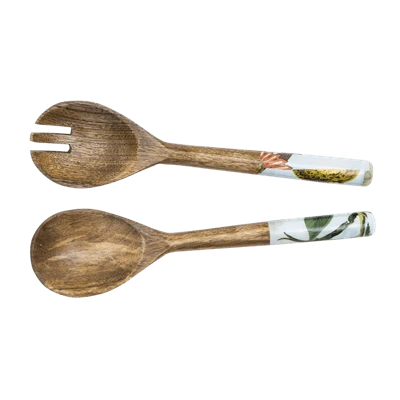 Met het lemon bird saladebestek van By Room kiest u voor een stijlvol slacouvert met een speelse twist. De 2-delige set is vervaardigd uit mangohout dat afkomstig is uit India en is verkrijgbaar in diverse dessins.