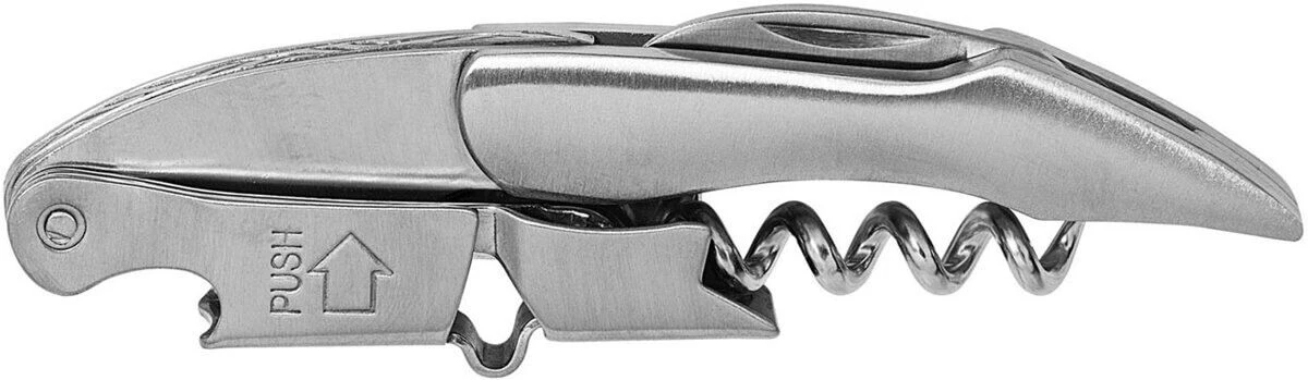 De Cookai kurkentrekker is volledig gemaakt van roestvrij staal. De opener is voorzien van een kurkentrekkerspiraal, een twee-staps hefboom, een capsulesnijder en een flesopener.