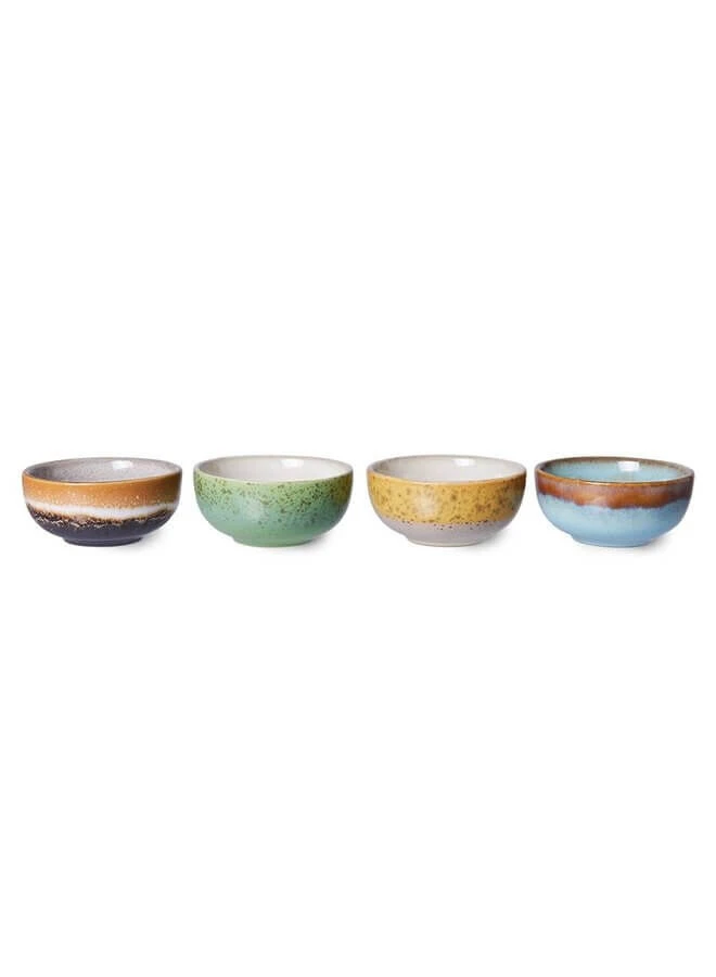 De 70’s castor schaaltjes set van HK Living bestaat uit vier schaaltjes in diverse kleuren. De schaaltjes zijn rond en hebben een diameter van 8,3 cm en een hoogte van 4 cm. De schaaltjes zijn ideaal voor het serveren van kleine hapjes en passen bij de op de planeten geinspireerde servieslijn van HK living.