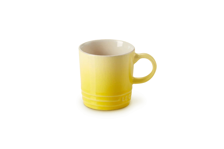 De Le Creuset espressomok heeft een inhoud van 100 ml. De beker is gemaakt van geel aardewerk en heeft een diameter van 8,75 cm en een hoogte van 6,5 cm. Voor het drinken en serveren van espresso.