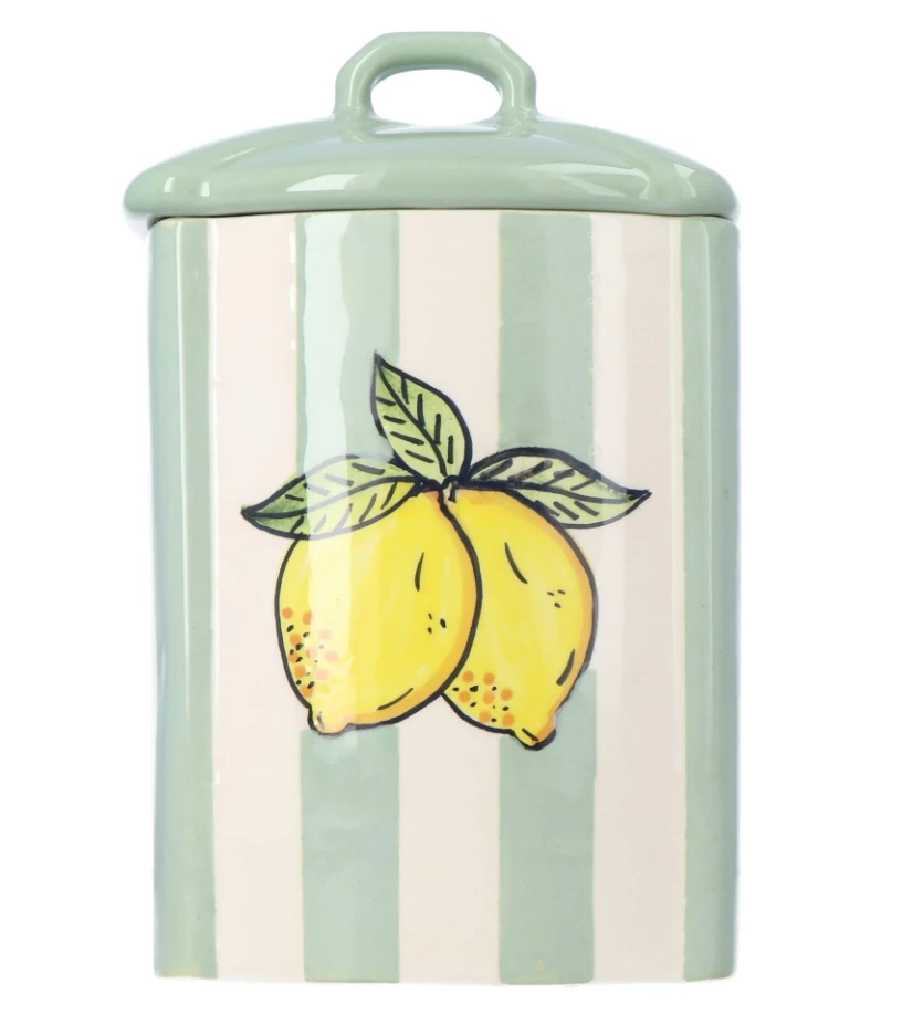 De Oldenhof citroen voorraadpot is gemaakt van geglazuurd aardewerk. De pot heeft een lengte van 18 cm, een breedte van 11 cm en een diepte van 10 cm. De deksel ligt los op de pot, gebruik de pot voor het bewaren van lang-houdbare producten zoals snoep.