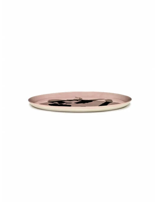Het Serax Feast by Ottolenghi serveerbord heeft een diameter van 35 cm en is 2 cm hoog. Het aardewerken bord is roze van kleur en heeft een gouden schildering.
